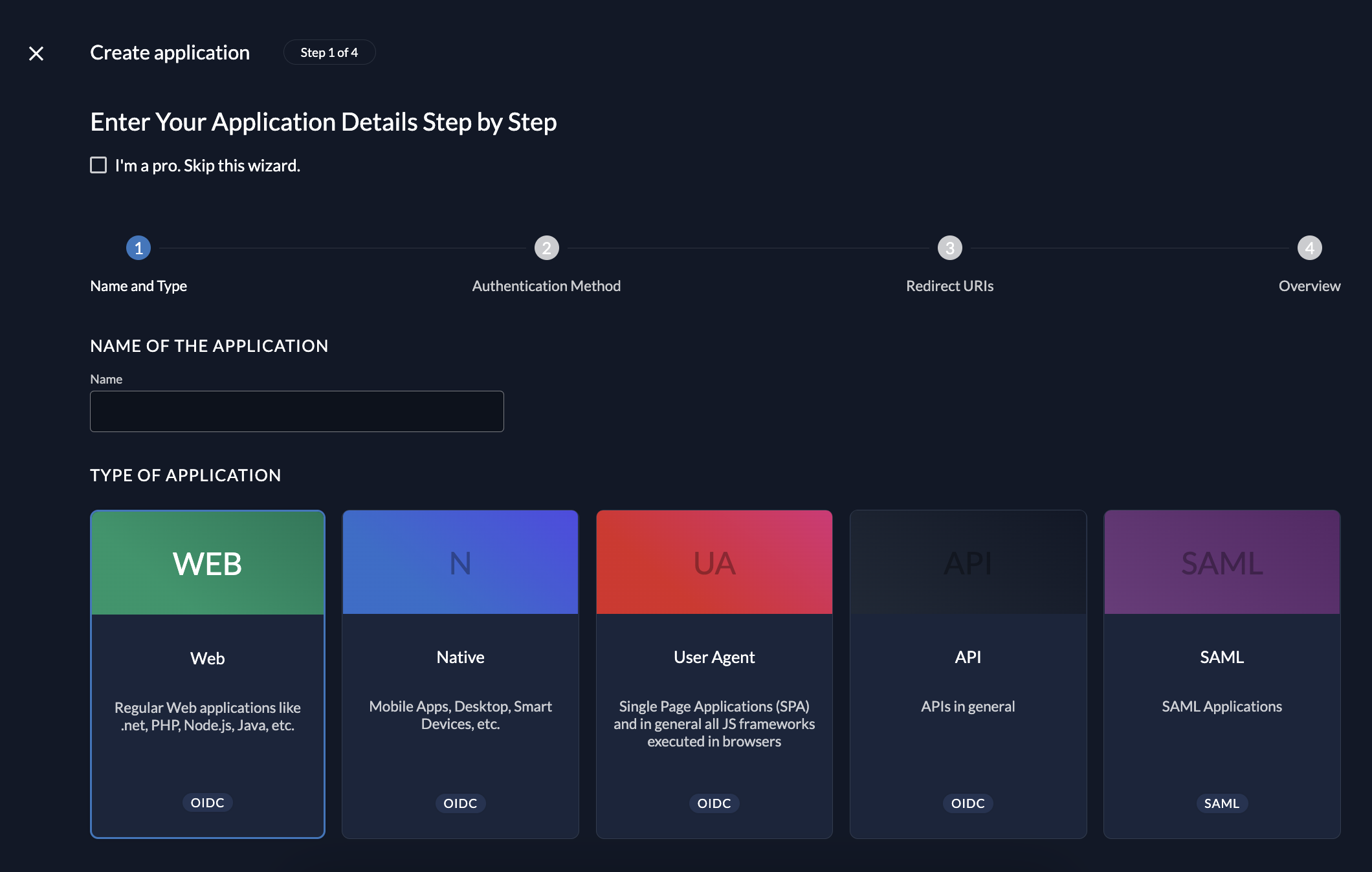 Go to the detail page of your project and click the "+"-button in the application-section. This will lead you to the the creation wizard.