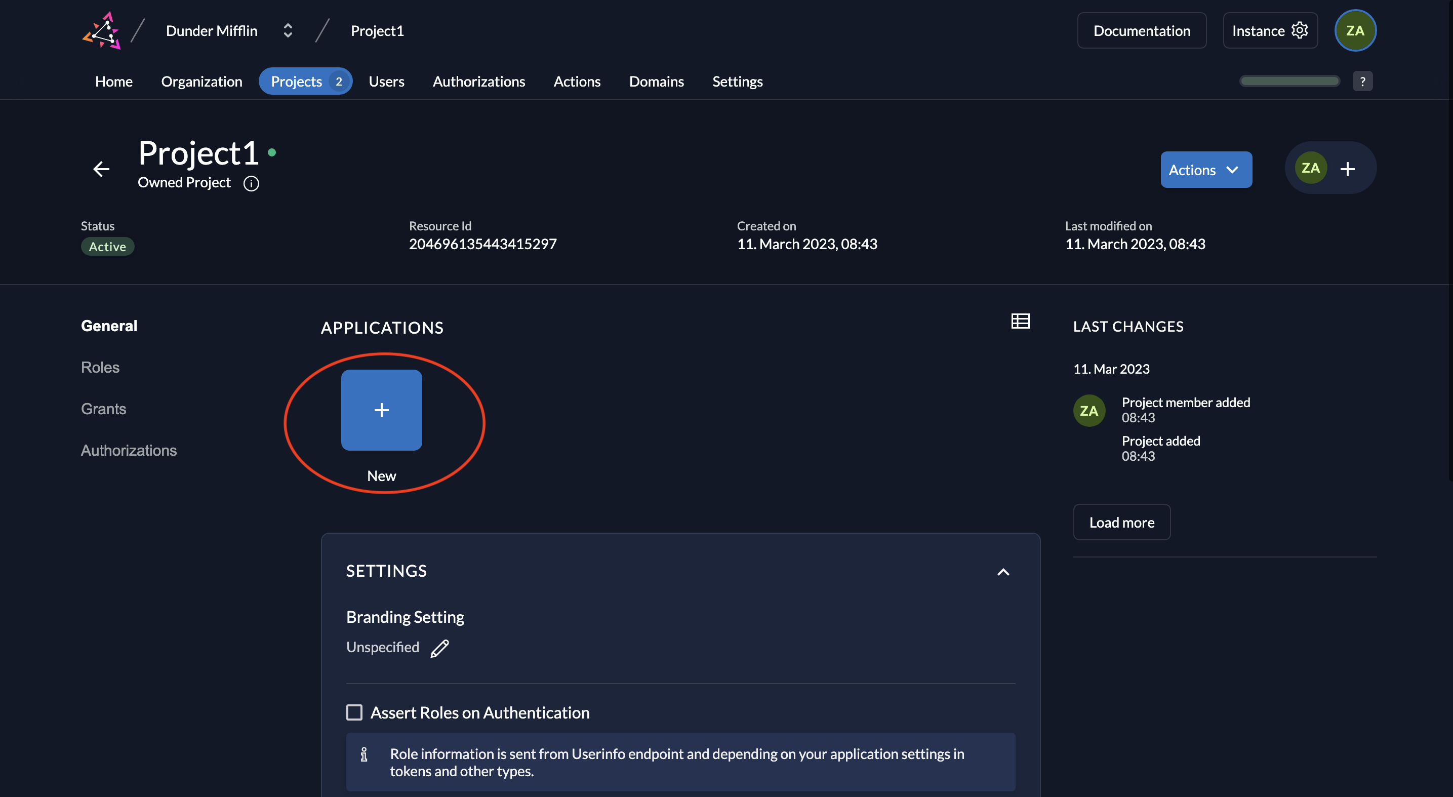 - In your ZITADEL project, click New to add an application.