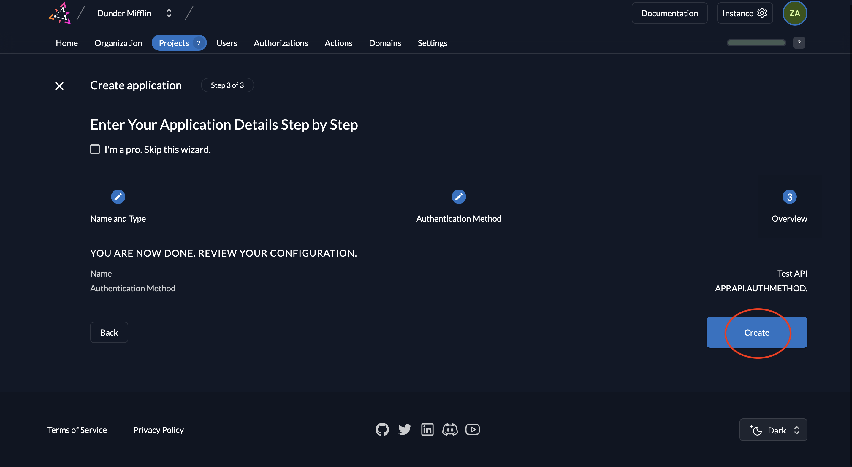 - Review your settings and click Create.