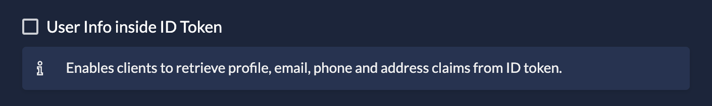 - Userinfo Endpoint: Check the Assert roles on authentication box in your Project Settings.